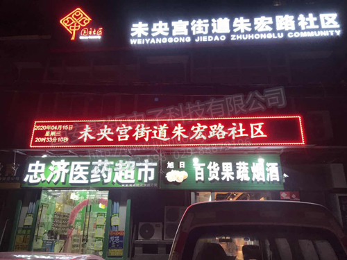 祝賀未央宮街道朱宏路社區室外成功安裝P10顯示屏+LED窗口顯示牌!